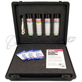 The Magnaflux SK-416 SPOTCHECK Kit is designed to detect cracks and surface discontinuities in non-porous materials. It features high-concentration dyes and quality solvents for effective dye penetrant inspections, allowing for visible red dye liquid penetrant evaluations without the need for ultraviolet black light.