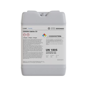 Oakite 33 is a liquid acidic compound designed for removing light grease, oils, shop dirt, flux, rust, oxides and heat scale and for preparing metals for painting. It is also used for cleaning and conditioning aluminum prior to surface conversion processing. Another application, recommended by stainless steel manufacturers, is the use of Oakite 33 for cleaning stainless steel to remove dirt and embedded soils in the metal.