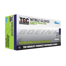 TGC Grey Nitrile Gloves, 400mm Cuff, Extra Large (XL), 40 gloves per box, 8 boxes per case