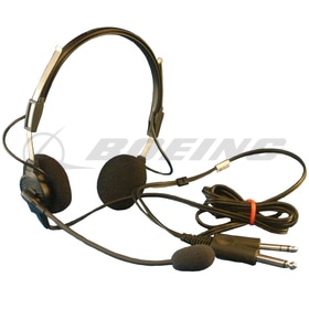 Lightweight dual-ear aviation headset with passive noise reduction, FAA TSO certified, featuring a noise-canceling electret microphone and superior comfort for extended flight operations.