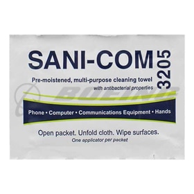 Introduced over 35 Years ago, Sani-Comâ„¢ was originally designed as a single use towelette for telecommunications and respiratory equipment cleaning. At the request of our customers, the product has since been tested and approved for use as a hand sanitizer. Case: 200/bag; 6 bags/case.