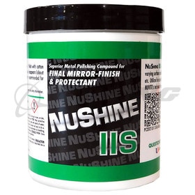 Superior Metal Polishing Compound for final mirror-finish and protectant. NuShine IIS is part of a system of graded polishing compounds addressing varying surface conditions on clad, cast or forged aluminum, brass, nickel, stainless steel, etc., and minor paint blemishes. Utilized in a one step procedure. Grade S is a finishing grade that gives a deep, clear image when used as a final step on a properly prepared, oxidation-free surface. It will remove swirl marks and create an unbeatable mirror. NuShine IIS is ideal for finishing/restoring already polished aluminum. Grade S is not abrasive, so it won't remove oxidation. Certified to AMS1650, D6-17487 and CSDI.
