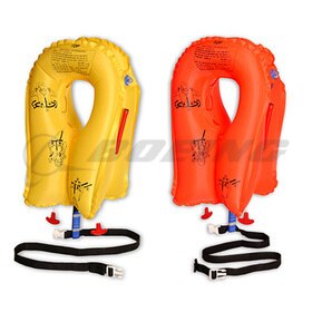 Standard vest components include: adjustable waist strap, vest locator light & water-activated battery, CO2 inflation cylinder and an oral inflation tube