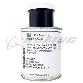 P/S 870 Class B corrosion inhibitive sealant. This material acts as an effective barrier against the common causes of corrosion on the aluminum alloys or between dissimilar metals. The cured sealant maintains elastomeric properties after limited exposure to both jet fuel and aviation gas. P/S 870 Class B is a two-part, manganese dioxide cured polysulfide compound. It cures at room temperature to form a resilient sealant having excellent adhesion to common aircraft substrates.