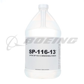 SP-116-13 is a proprietary blend of cleaning solvent and surfactant in a water-based solution. SP-116-13 is specially blended to prevent optical distortion on the windshield, so that vision is not impaired during flight. Part number SP-116-13=33 can also be used for manual cleaning of aircraft external glass surfaces.